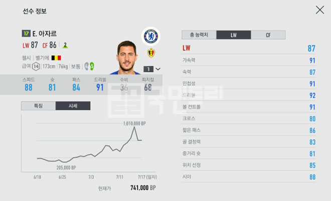 ▲ 피파온라인4 17 아자르의 시세와 능력치