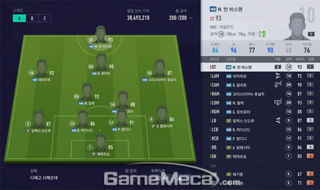챌린지유저는 가장 중요한 포지션으로 2명의 CDM을 꼽았습니다. “포백의 1차 보호와 박스 바깥쪽 중, 장거리 슛, 감아차기 슛을 CDM으로 방어할 수 있다. 또 수비 후 역습 상황에서 전개의 시작이 되는 포지션이다. 나는 NHD 프티와 발락을 추천한다. 두 선수 모두 키가 크고, 능력치도 좋아 맹활약 한다. 발락은 약간 느리다는 단점이 있지만 피지컬과 몸싸움 능력이 탁월하고 세트피스에 강하다. 가성비 선수로는 NHD 잠브로타, 17 콘도그비아를 추천한다.”