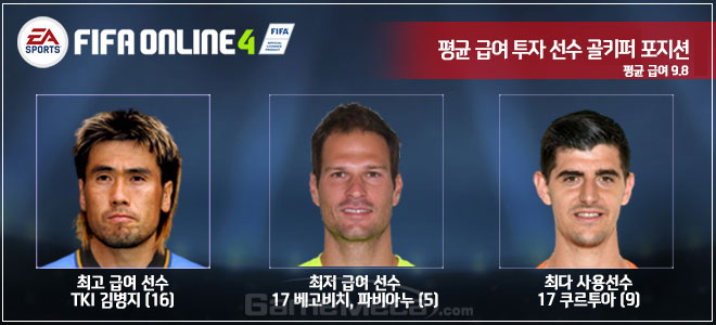 ▲ 피파온라인4 챌린지 랭커 70인이 사용한 최고, 최저 급여 선수 및 최다 사용 골키퍼