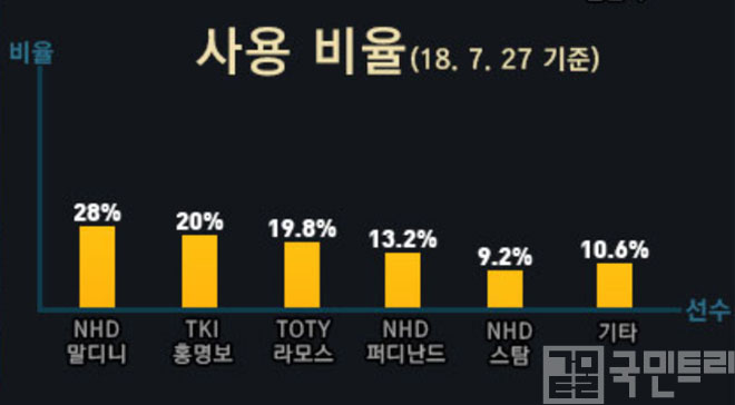 ▲ 피파온라인4 국민트리 포메이션 기준 챌린지 랭커들의 수비수 사용 비율