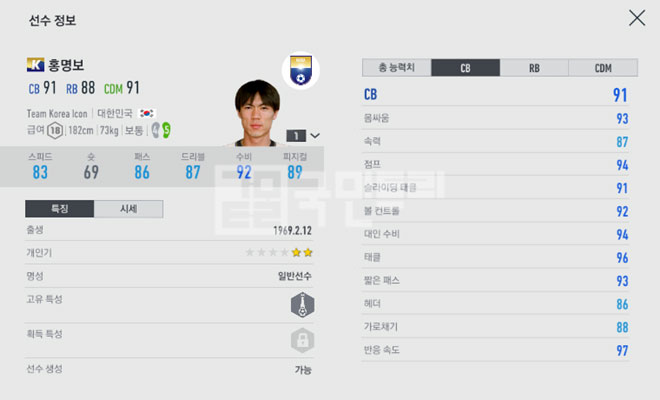 ▲ 피파온라인4 TKI 홍명보의 능력치