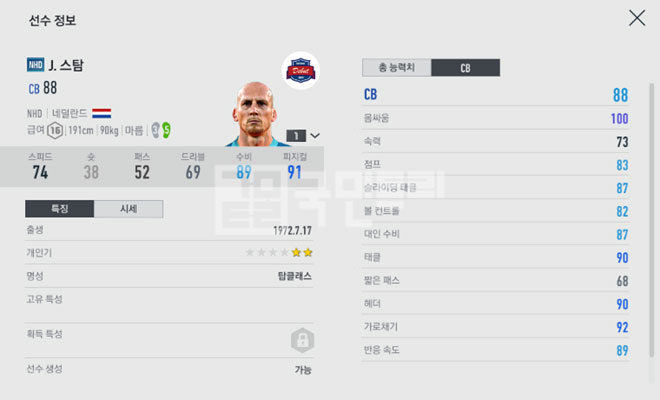 ▲ 피파온라인4 NHD J. 스탐의 능력치