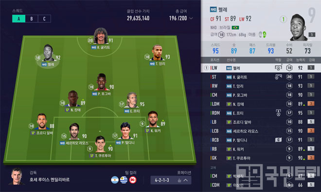 피파온라인4 국민트리는 매일 랭커 스쿼드를 업로드해 공식경기 챌린지 랭커와 프로게이머들이 어떤 포메이션, 선수, 전술을 사용하는지 제공한다. 오늘 준비한 포메이션은 62기학생회의 ‘4-2-1-3’ 포메이션이다. 4-2-1-3 포메이션은 2명의 수비형 미드필더와 함께 중앙 미드필더까지 수비에 가담하는 장점이 있다. 본문에서 보다 자세히 확인해보자.