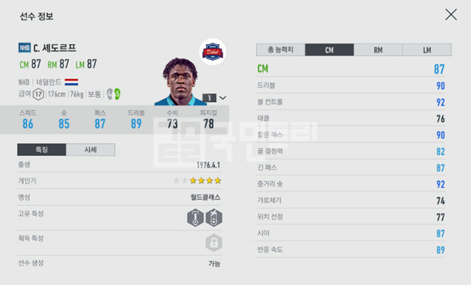 ▲ 피파온라인4 NHD C. 셰도르프의 능력치