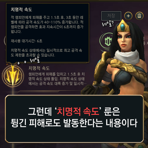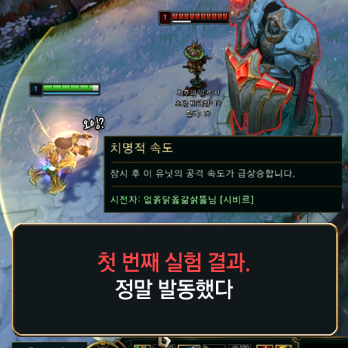 리그오브레전드 전장의 여제 ‘시비르’는 공격 기술로 ‘튕기는 부메랑’을 사용한다. 기술을 사용하고 기본 공격을 하면 부메랑이 튕겨 다수의 적에게 피해를 주지만, 처음 기본 공격에 맞은 대상에게만 적중 시 발동 효과가 적용된다. 그런데 해당 기술과 관련한 제보가 도착했다. 처음 기본 공격뿐만 아니라 튕긴 부메랑 피해로도 ‘치명적 속도’ 룬이 발동한다는 것이다. 과연 사실일까? 그리고 이 외에도 또 발동하는 룬은 무엇이 있을까? 이를 알아보고자 실험을 진행해봤다.