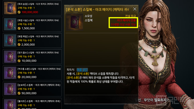 오딘은 각 마을의 ‘스킬북 상인’에게서 액티브 스킬을 구매할 수 있다. 다만, 상인은 같은 계열 직업의 스킬북도 판매해 스킬북을 잘못 구매한 유저들이 종종 있다. 예를 들면 아크 메이지를 육성 중인데, 다크 위저드 스킬북을 사는 것이다.